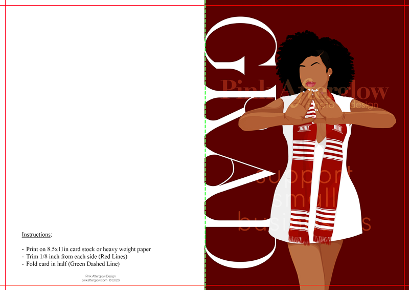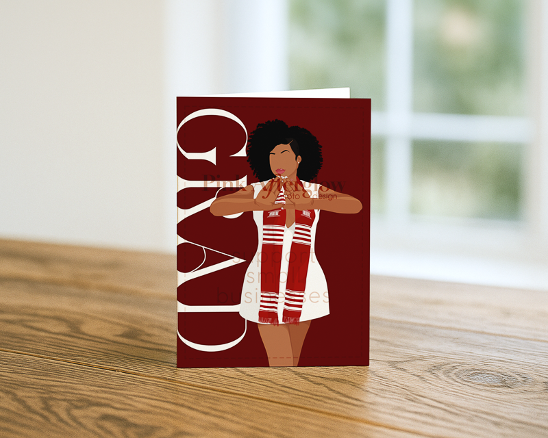 Graduation Card – Red & White Afro Stole Posed
